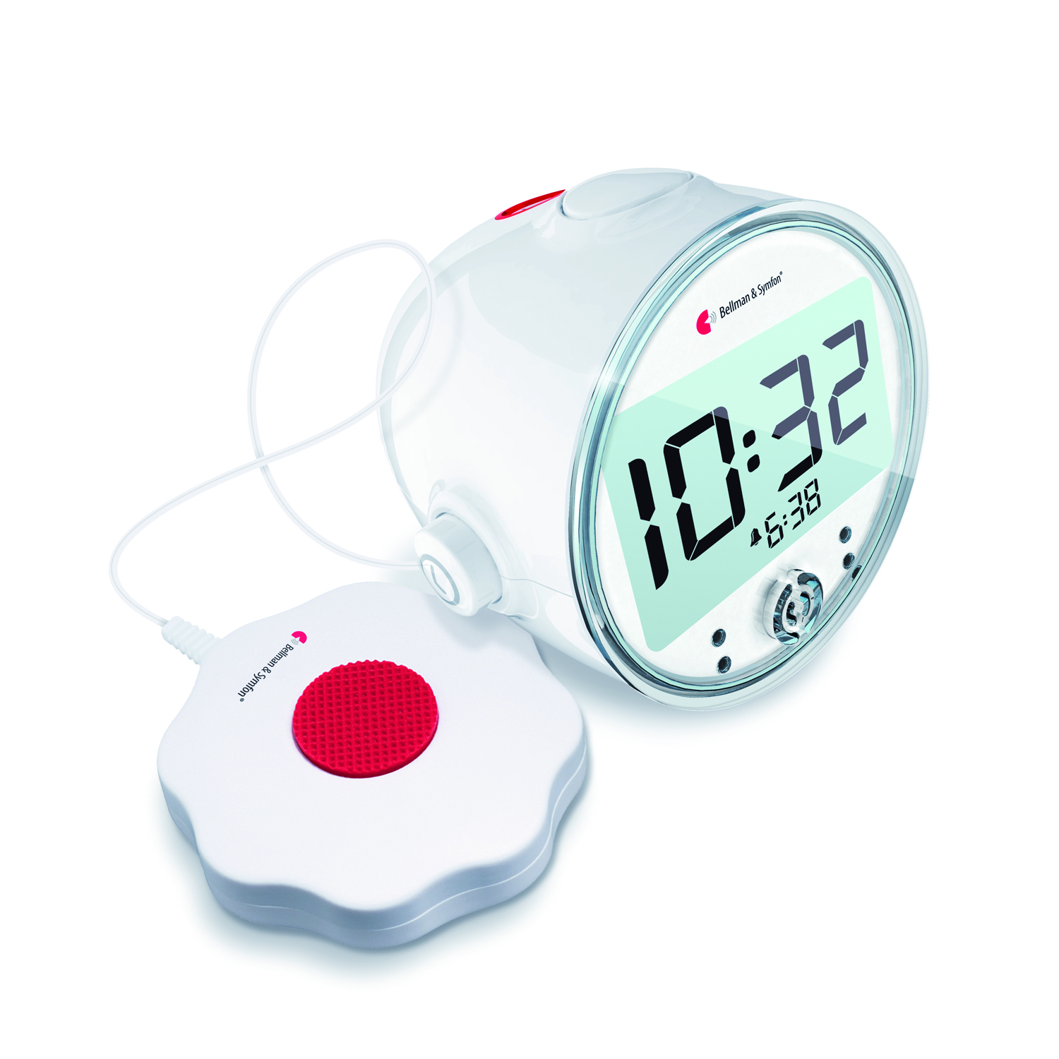 Denne alarmklokken vekker deg med høy lyd, blinkende lys og vibrasjoner fra sengevarsleren når det er på tide å stå opp. Den er lett å bruke og har mange funksjoner som nattlys, batteri backup, telefonuttak og en ekstern utløserinngang.