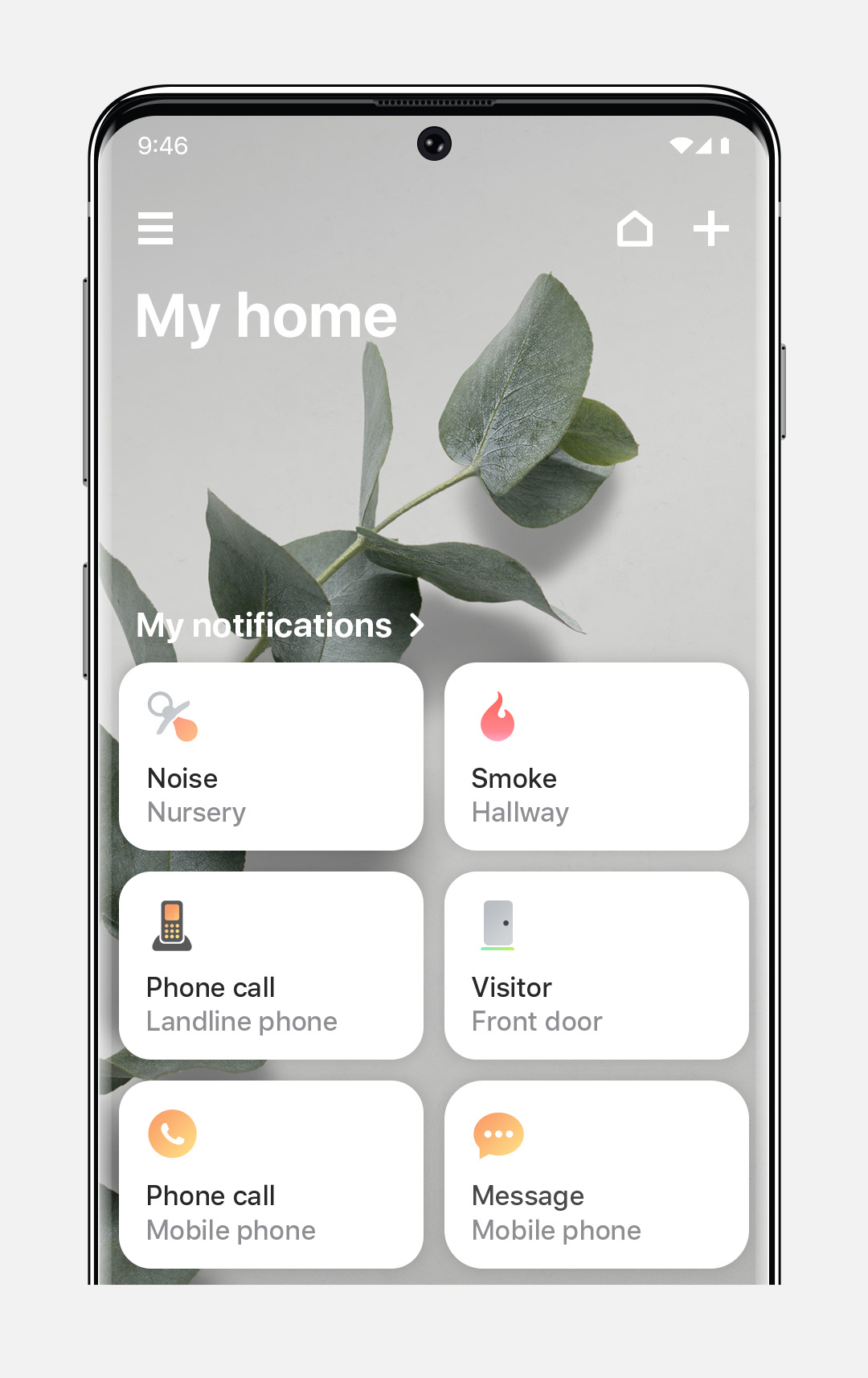 Trykk på Mine Varslinger for å velge ikon, merke og rom i ditt hus.