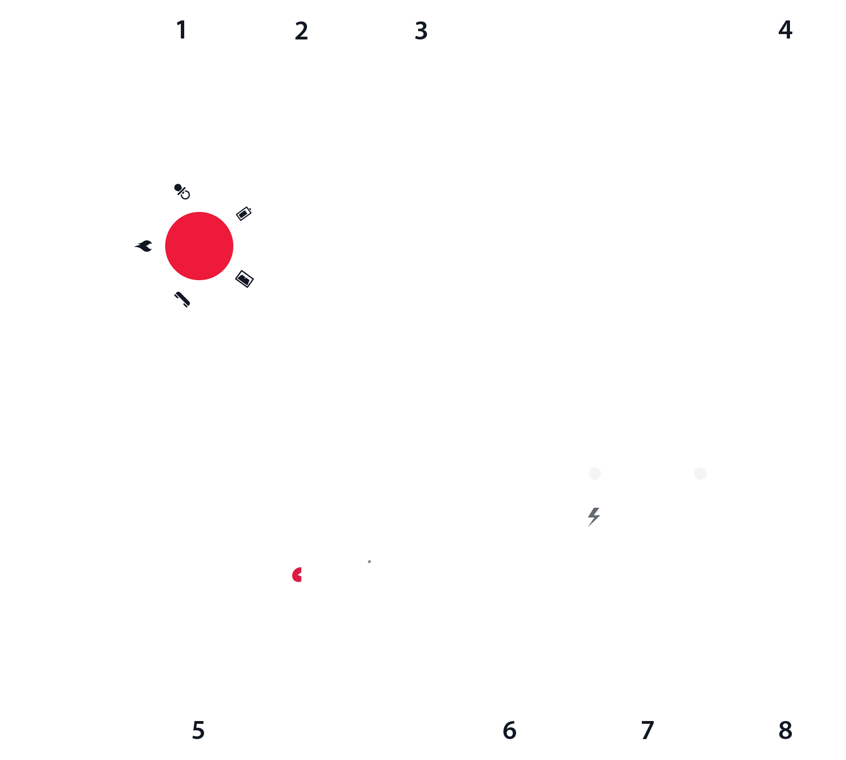 8 LED lys som indkerer lading