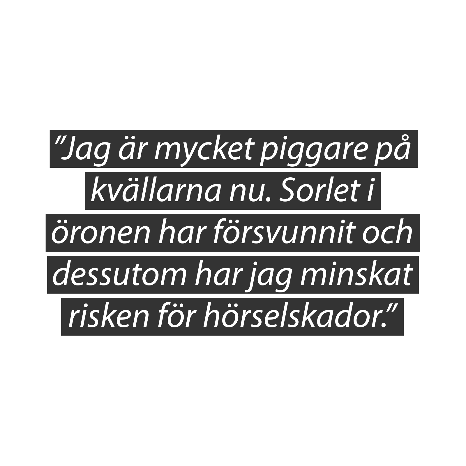 Jenny upptäckte hörselskyddet under hösten 2012 och märkte redan under första veckan att de gav resultat. Sedan dess har det varit självklart för henne att använda dem.